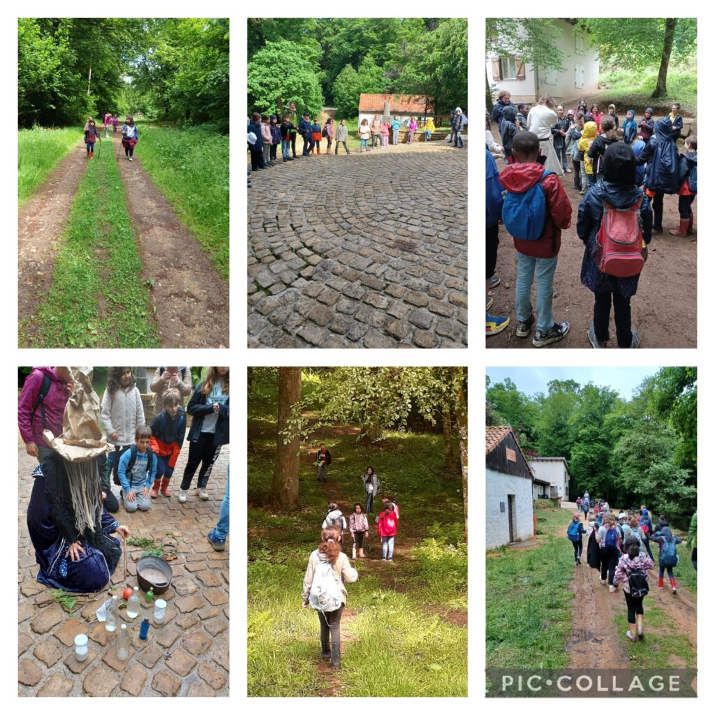 Jeu de sensibilisation à notre empreinte carbone, participation à la guérison de la vieille sorcière par un jeu d’orientation, promenade sensorielle dans la forêt et ateliers artistiques naturels …