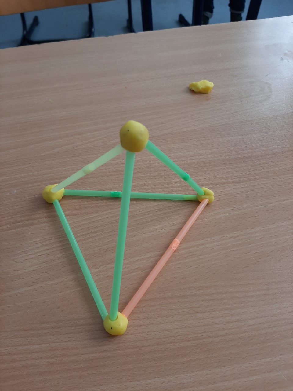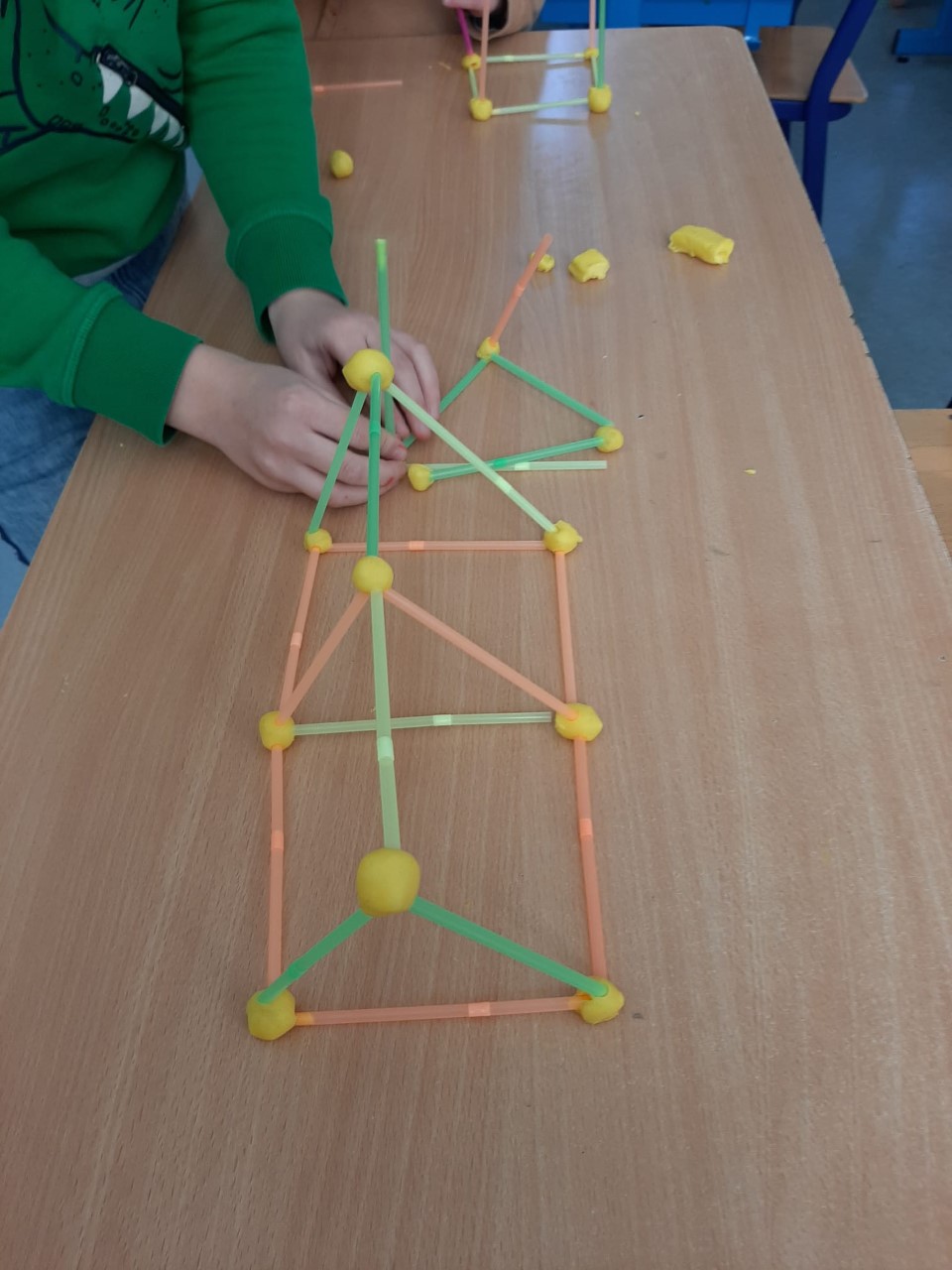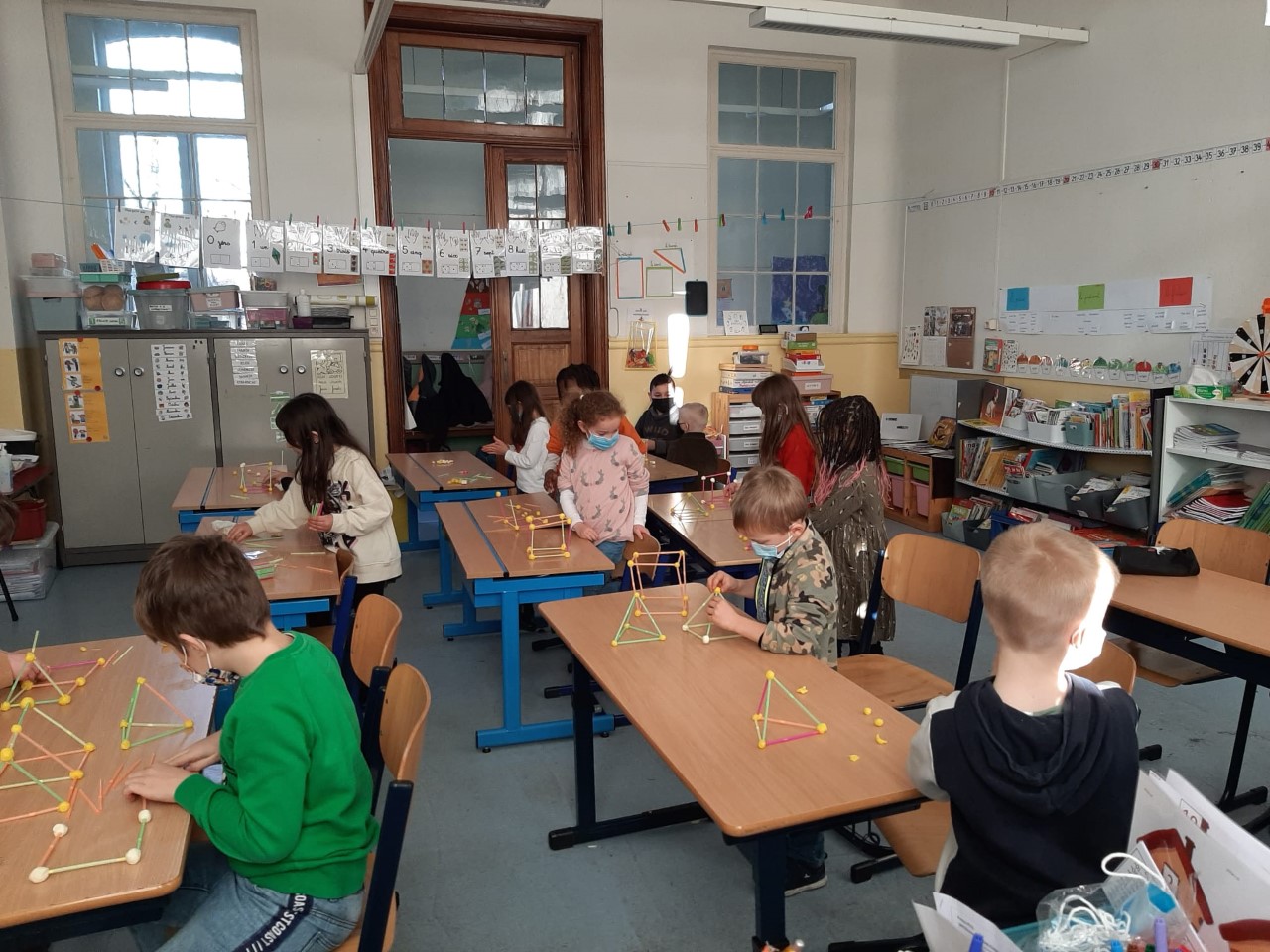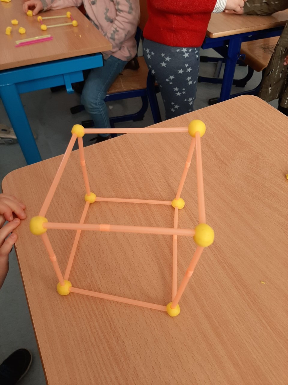Les élèves de la classe de Mme Caroline ont approfondi les notions d’arêtes, sommets, faces… lors de la construction de solides.