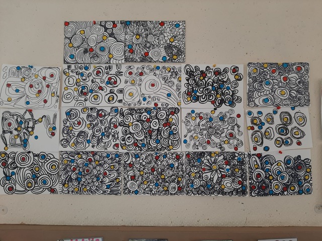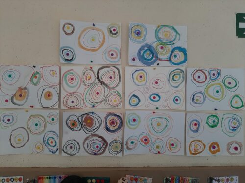 Pour l’éveil artistique, nous avons réalisé des œuvres avec des cercles concentriques.
