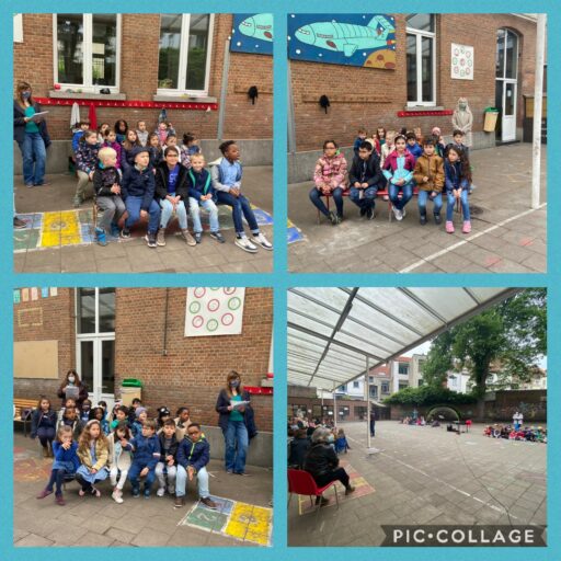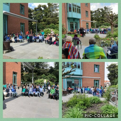 Notre projet « Rencontre en chansons » s’est terminé hier. Le matin,nous avons chanté pour les classes maternelle et pour la classe de Mme Sylvie dans la cour. Ce moment a été très apprécié.