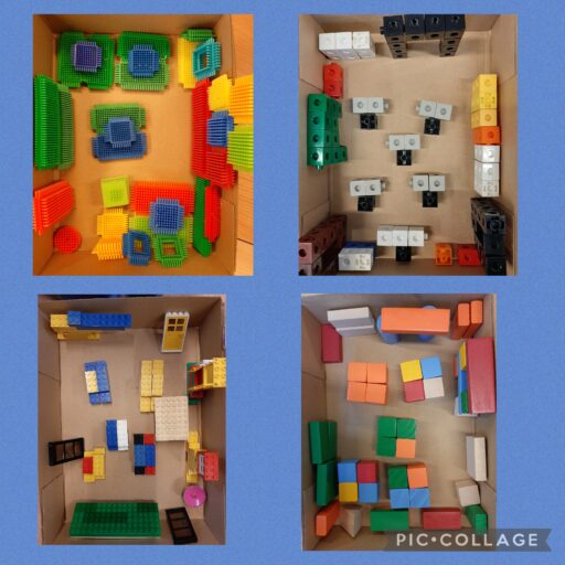 Après avoir manipulé des blocs et des Playmobil afin de découvrir les différents points de vue, les élèves de P1-P2 ont fait des maquettes de la classe par groupe.