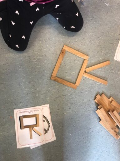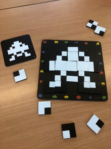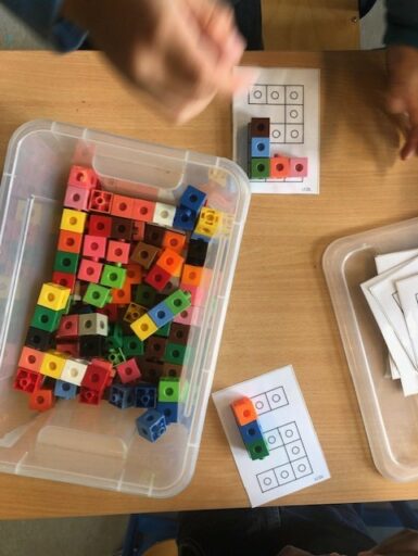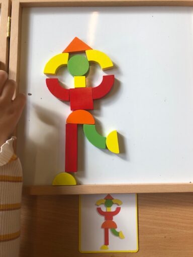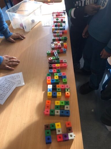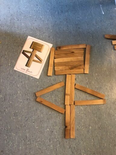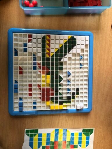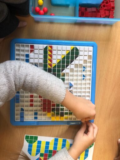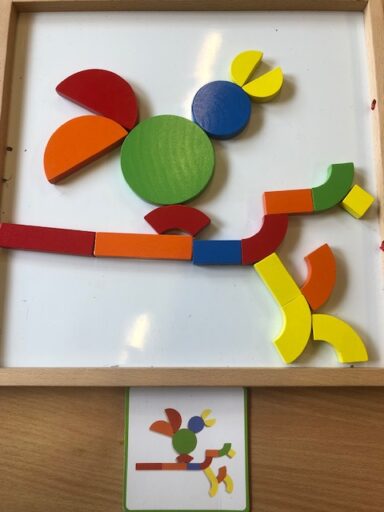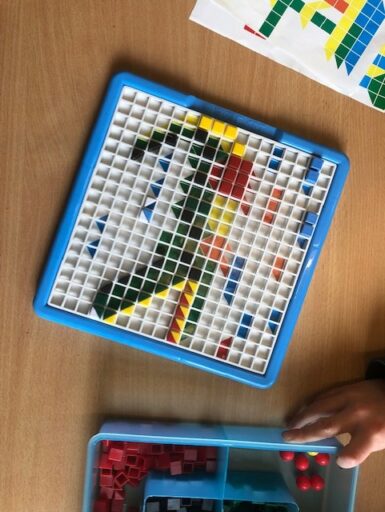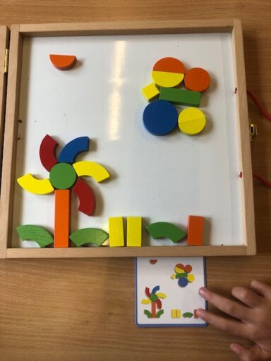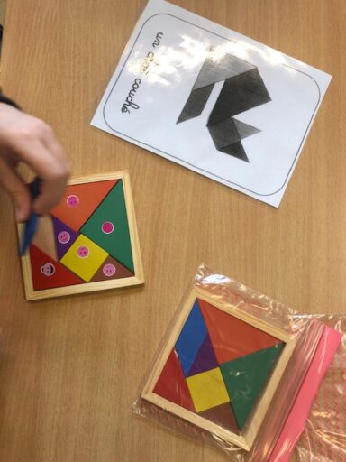 À travers la manipulation, les élèves de P1 et P2 ont pu créer avec le tan-gram, les cubes encastrables, des formes aimantés, la pixel art (jeu de placement sur quadrillage), les planchettes Kapla…