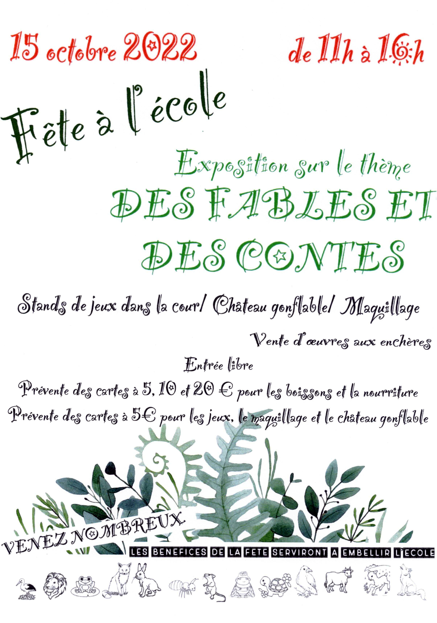 Prévente des cartes à 5€ pour les jeux, le maquillage et le château gonflable.
