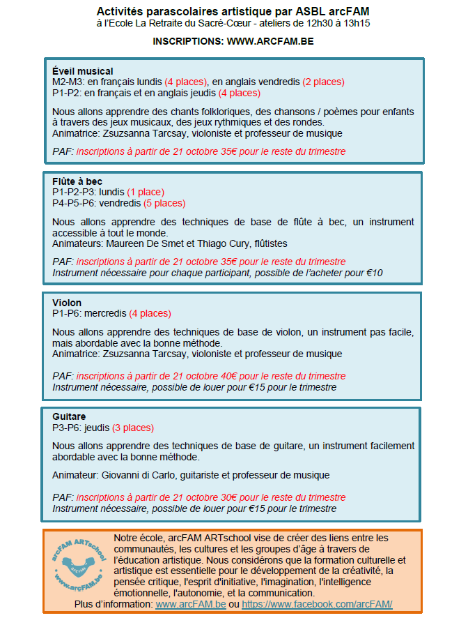Vous pouvez télécharger le document au format PDF en cliquant sur ce lien : Activités parascolaires artistique par ASBL arcFAM