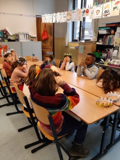 Notre rentrée a démarré par la dégustation de la galette des rois et par la découverte du magnifique album « Le tout petit roi ». Nous avons dessiné nos portraits royaux au pastel et nous avons collé des formes géométriques pour créer le château. Nous en avons profité pour faire les empreintes des solides dans la plasticine afin de redécouvrir les formes géométriques. Tous les élèves ont aussi écrit ce qu’ils avaient retenu de l’histoire. Et les P2 ont pu découvrir l’adjectif et ses accords avec le PETIT roi et la GRANDE princesse par exemple.