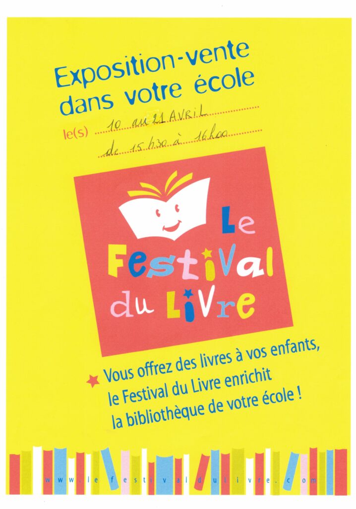 Possibilité de visiter notre première édition du « Festival du Livre » du 11 avril au 21 avril de 15h30 à 16H00.
