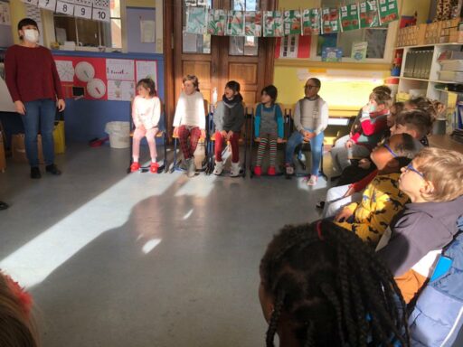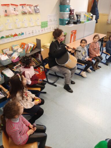 Nous avons déjà eu 2 séances du projet durant ce mois de janvier. Nous avons découvert la chanson « La ballade irlandaise » de Bourvil et nous avons inventé des phrases afin d’inventer de nouveaux couplets. Un beau travail autour des rimes en classe! Les enfants ont chanté la chanson tout en faisant des percussions avec des maracas. Aujourd’hui, Florence et Marie-Sophie ont débuté l’apprentissage de « Siffler sur la colline » de Joe Dassin. Les élèves étaient heureux de découvrir et d’écouter la guitare de Marie-Sophie. Nous avons aussi chanté d’autres chansons et fait du rythme avec notre corps. Vivement la prochaine séance!