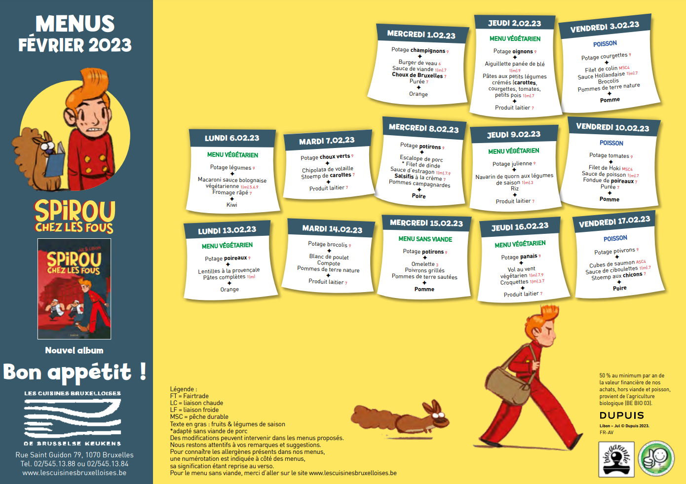 Voici le menu du mois de février, pour rappel il n’y a pas de repas chaud le mercredi.