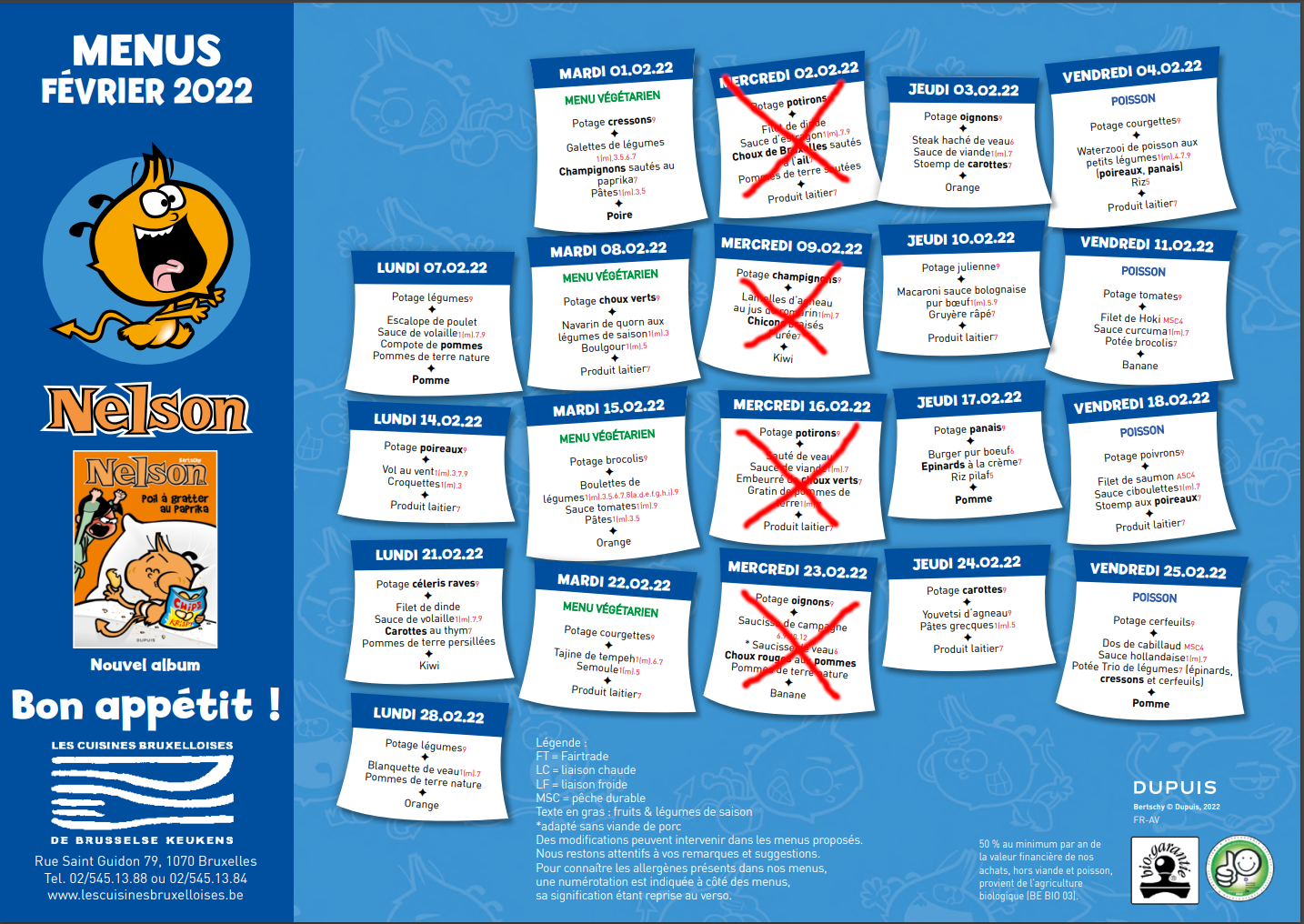 Voici le menu du repas chaud pour le mois de février, pour rappel il n’y a pas de repas chaud le mercredi.