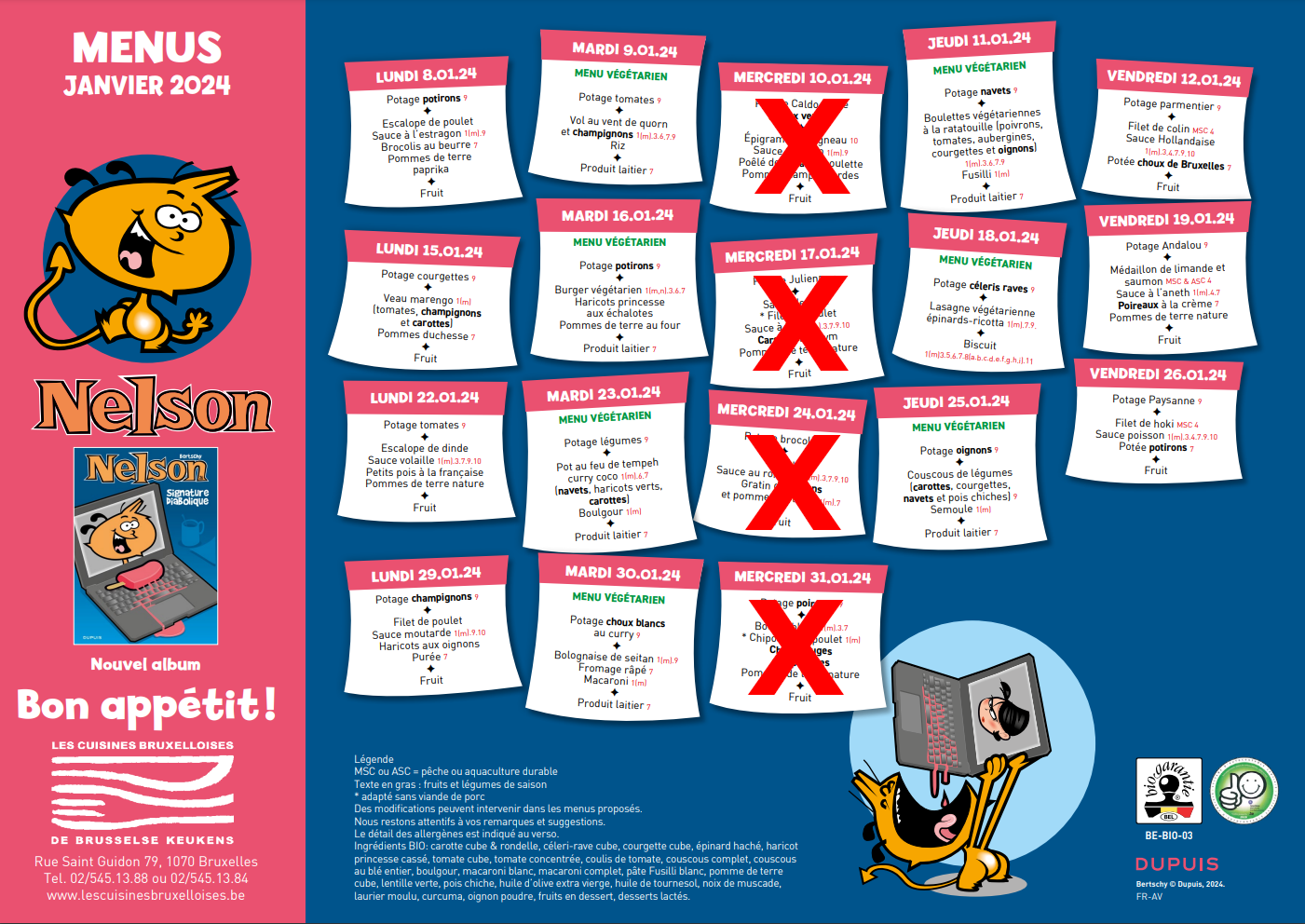 Voici le menu du mois de janvier, pour rappel il n’y a pas de repas chaud le mercredi.