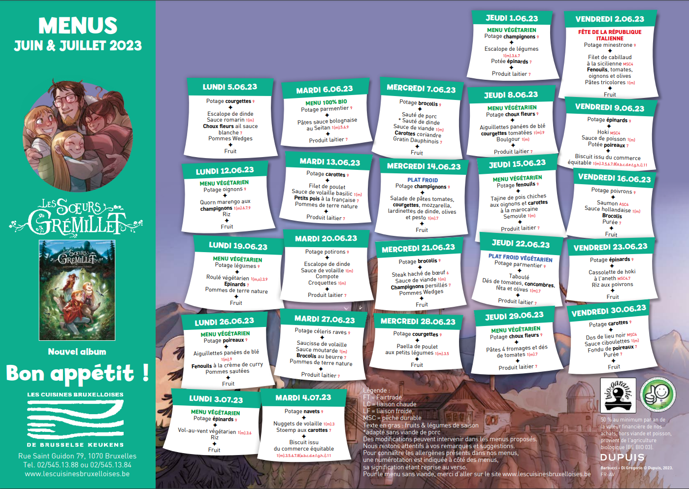 Voici le menu du mois de juin, pour rappel il n’y a pas de repas chaud le mercredi.