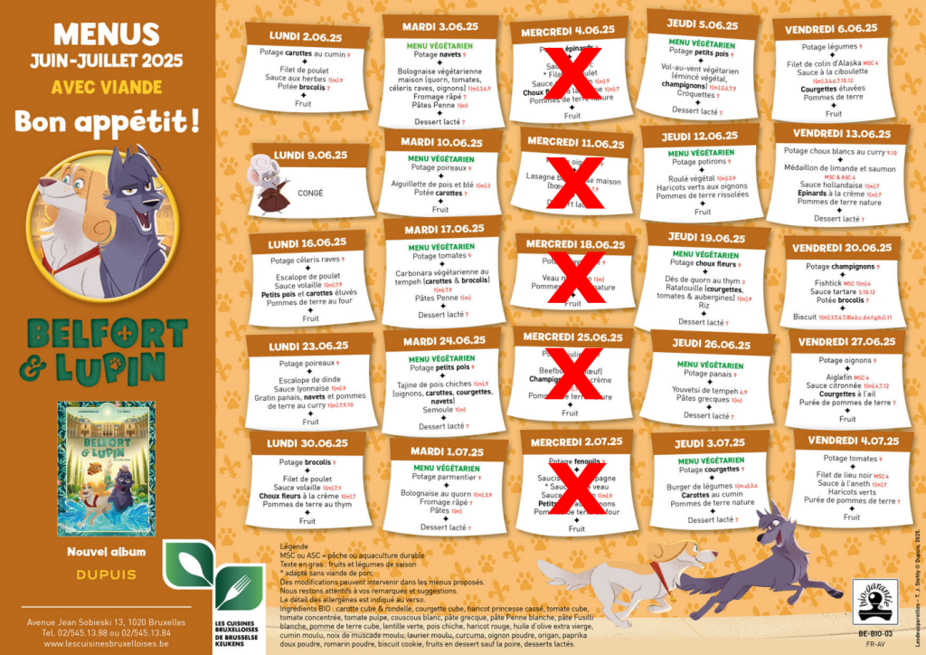 Voici le menu du mois de juin, pour rappel il n’y a pas de repas chaud le mercredi.