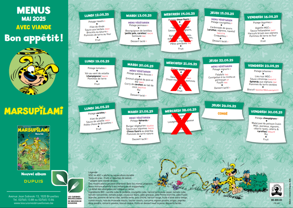 Voici le menu du mois de mai, pour rappel il n’y a pas de repas chaud le mercredi.