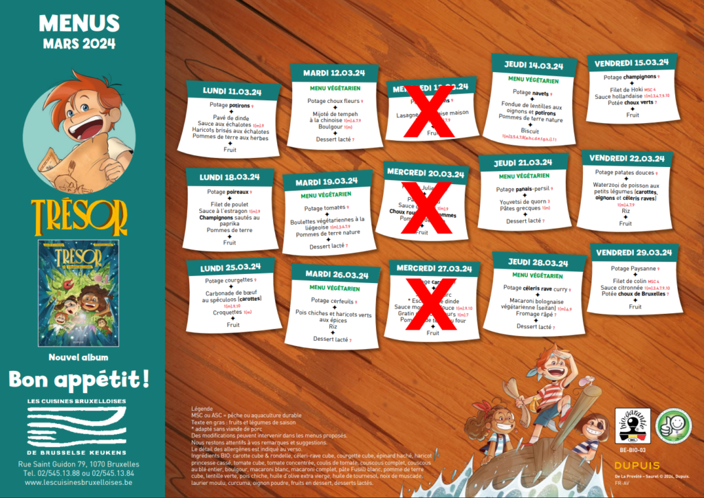 Voici le menu du mois de mars, pour rappel il n’y a pas de repas chaud le mercredi.