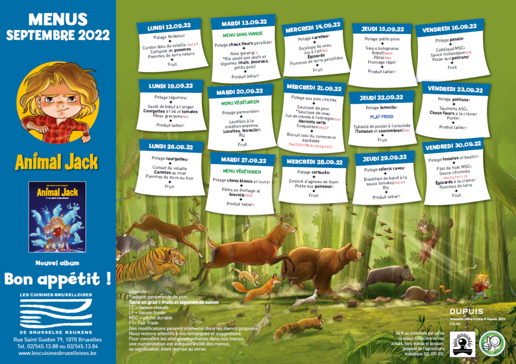 Voici le menu du mois de septembre, pour rappel le repas chaud débutera le 12 septembre.