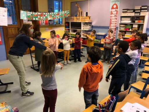 Chaque classe a donc la chance de vivre 2 ateliers d’1h30 par mois. Au programme : rythme, chant, découverte d’instruments…