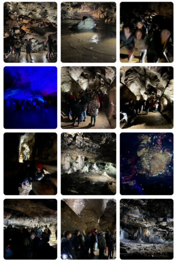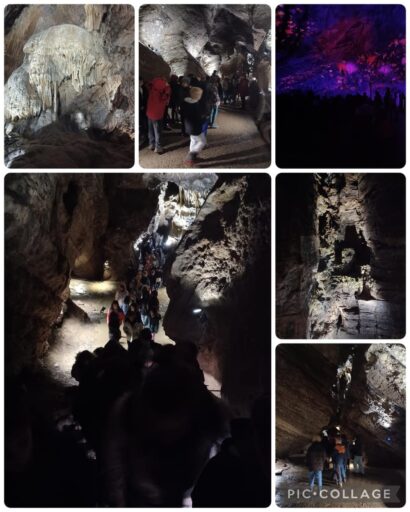 ⛰️ balade à la grotte de Han. Observation des stalactites, des stalagmites, des colonnes. Pour clore le parcours, un film est projeté sur les parois de la grotte ✨