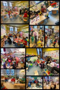 Mercredi,les élèves sont venus déguisés et ont défilé dans le couloir. Chacun a aussi fait un masque après avoir observé des visages peints par Pablo Picasso. Les enfants ont d’abord dessiné un projet. Ils ont ensuite dessiné la forme du masque sur un carton et ils l’ont peint. Le lendemain,ils ont collé les éléments du visage avec le matériel à leur disposition : papiers colorés,perles,carton ondulé… Quelle créativité! Bon congé à tout le monde! lire la suite…