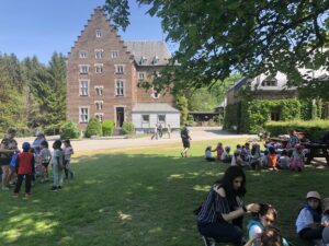 Première journée caniculaire pour nos classes vertes au pays d’Aubel. Après un délicieux repas, les enfants étaient divisés en 3 groupes pour les activités de l’après-midi.Au programme : découverte de la faune du ruisseau, balade paysagiste et jeux autour des 5 sens dans le domaine. Ensuite, les enfants étaient heureux de s’ installer dans leur chambre. Après le souper, chacun a préparé sa carte pour ses parents. Le calme est revenu ce soir au domaine.… lire la suite…