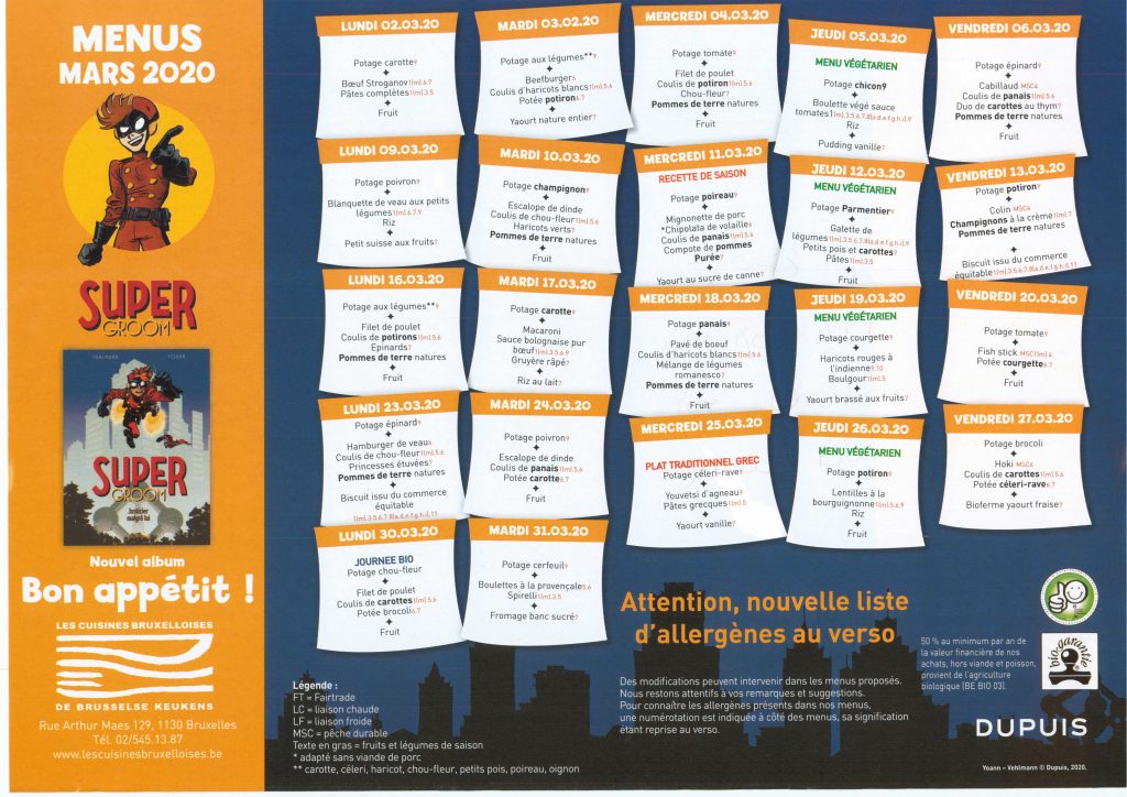 Voici le menu du repas chaud pour le mois de mars, pour rappel il n’y a pas de repas chaud le mercredi. lire la suite…
