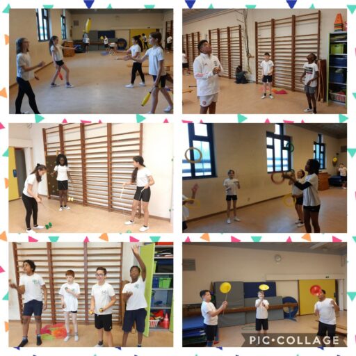 Les élèves de primaire ont déjà profité du nouveau matériel de cirque! Jonglerie,bâtons du diable,quilles,diabolos…Bravo à tous!